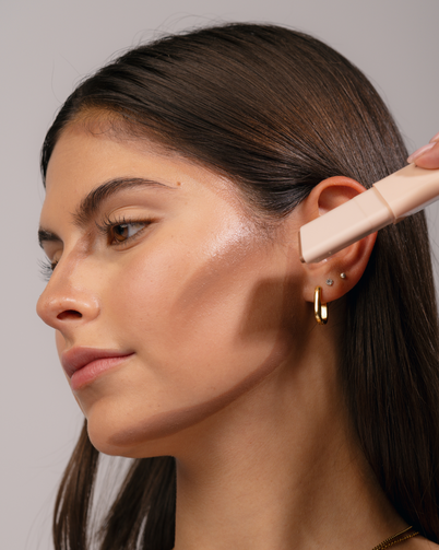 - start by stamping / swiping the stick anywhere you'd like to sculpt - below the cheekbones, dab on eyelids for depth, the sides of the nose to define, or the perimeter of the face and jawline for adding dimension